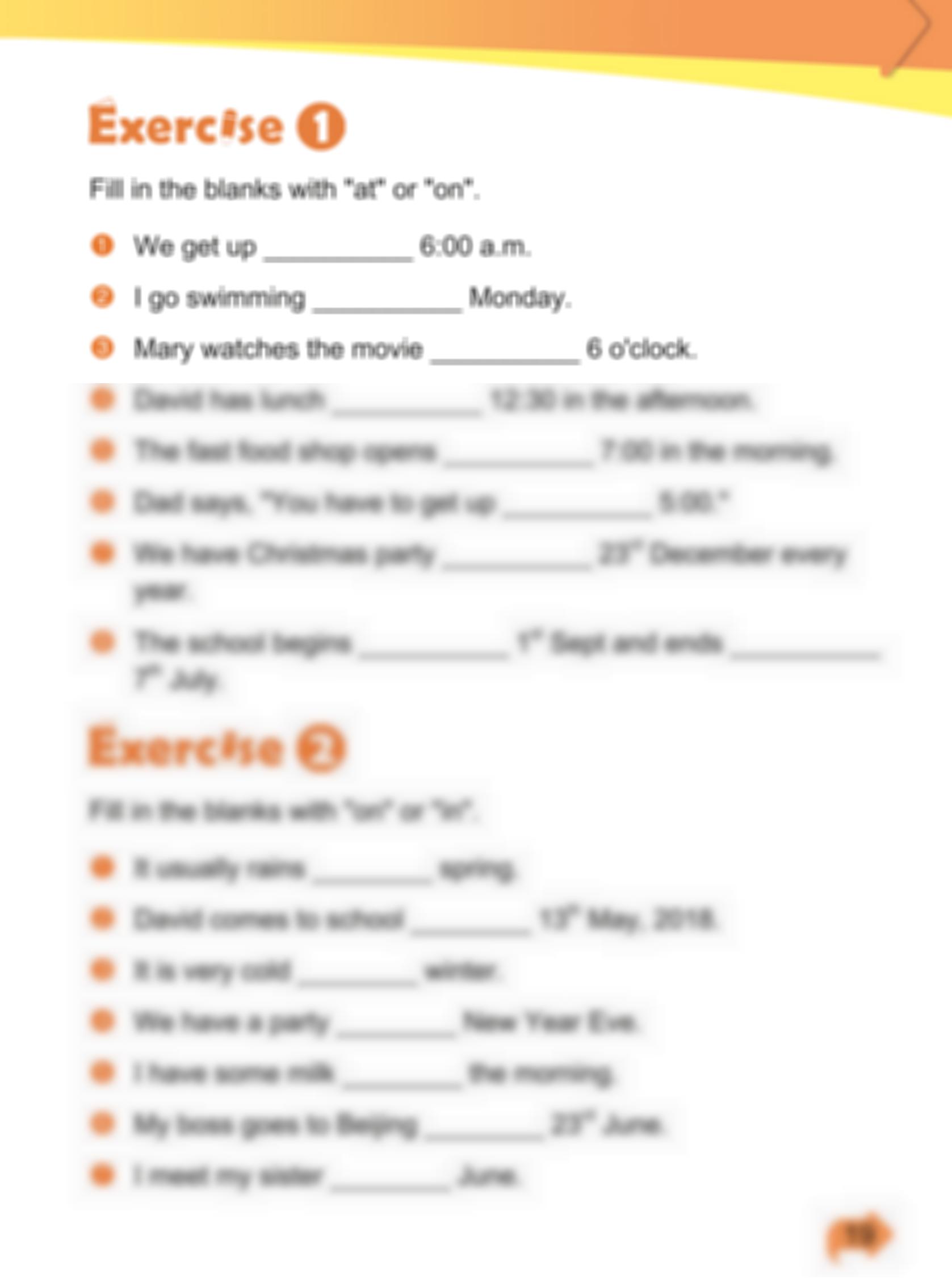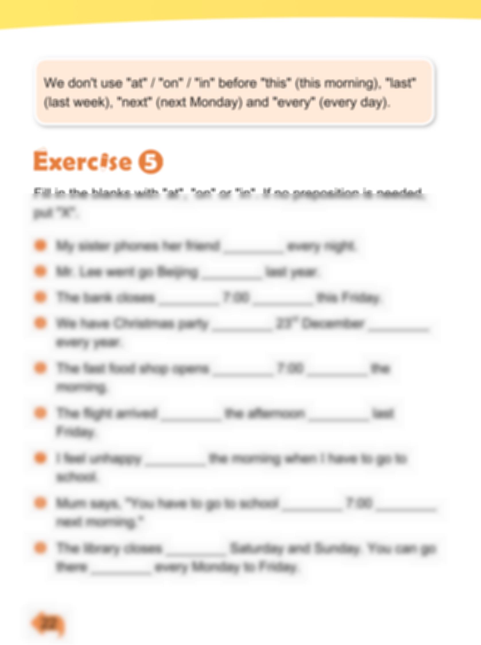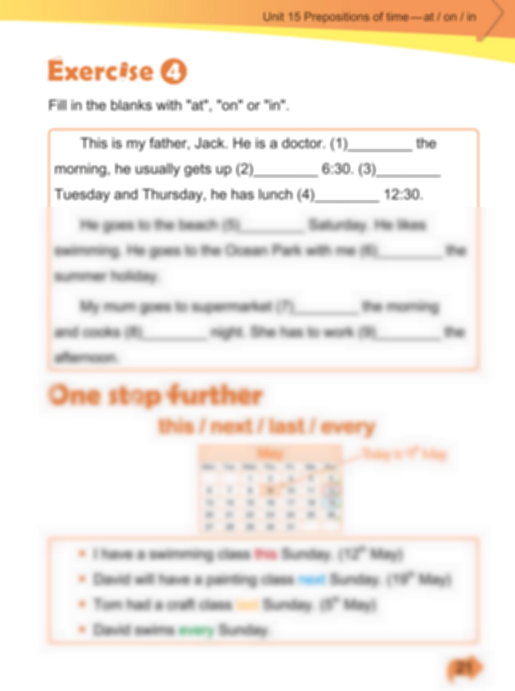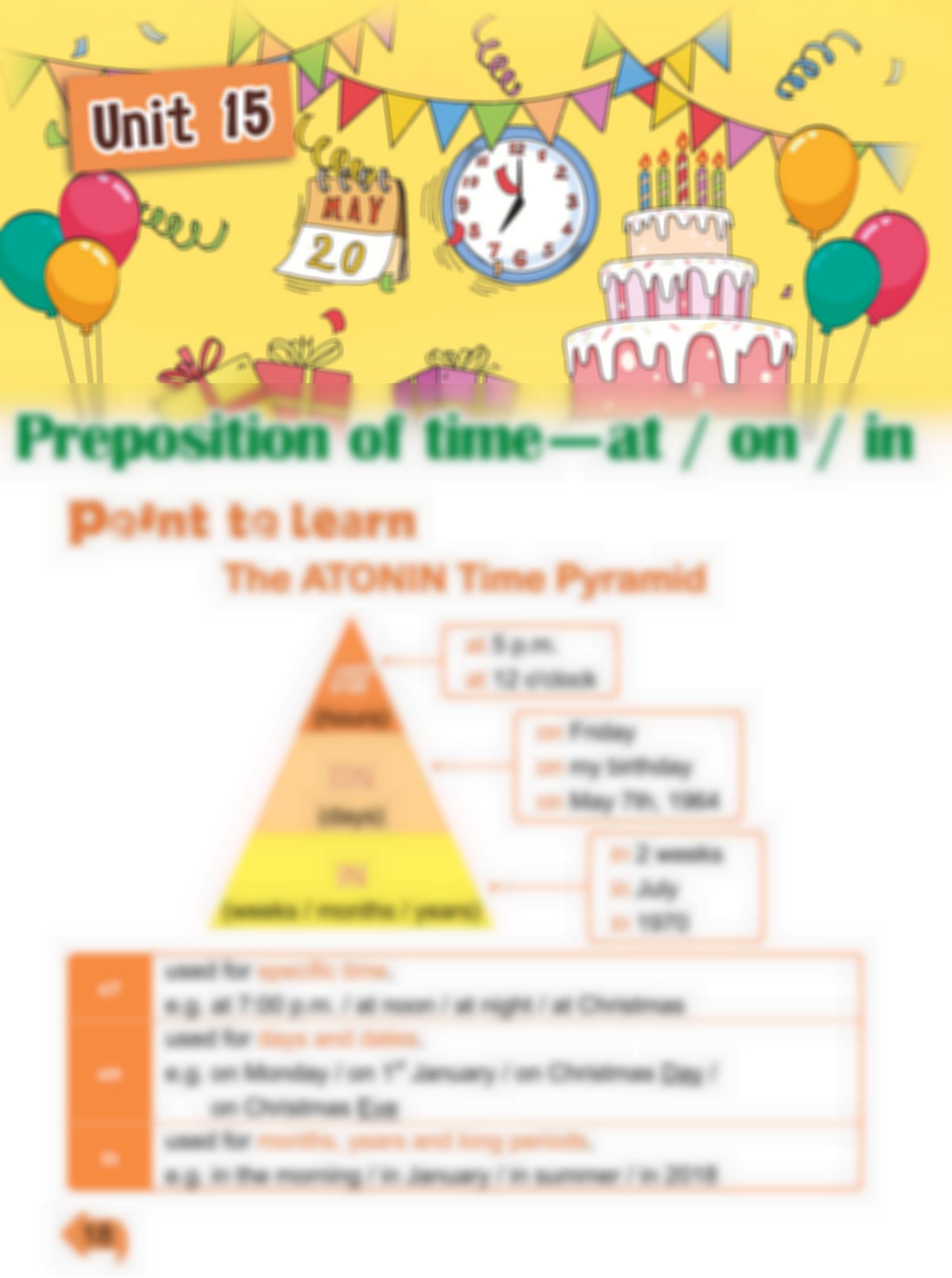 U15. Prepositions of time—at / on / in